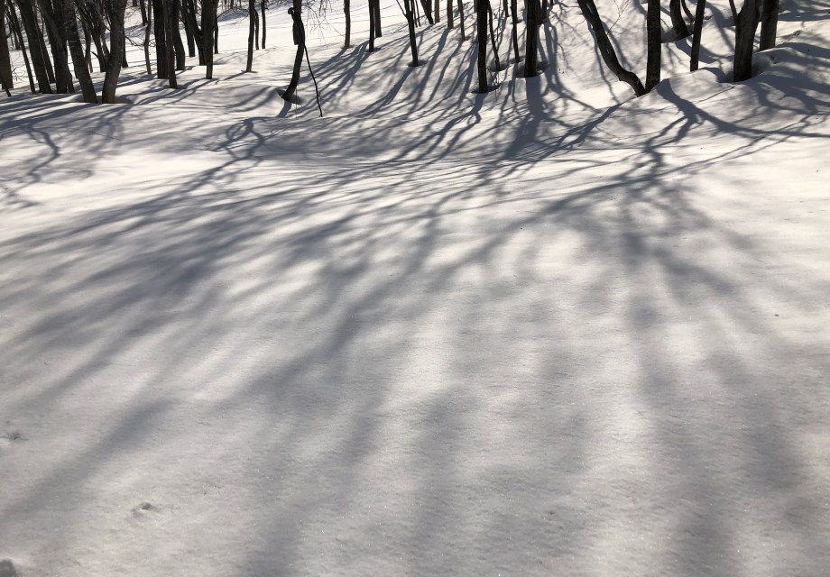 I was uncertain about the choreography. In the process, I fell and banged my knees and wrists many times, making indentations on the layers of new powder and packed ice. Sometimes I fell backward, landing with a thud that reverberated through my core. I wished I did not have to learn the 180 turns. I wanted to master my S turns first, and get used to going downhill without all the extra steps.