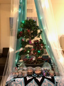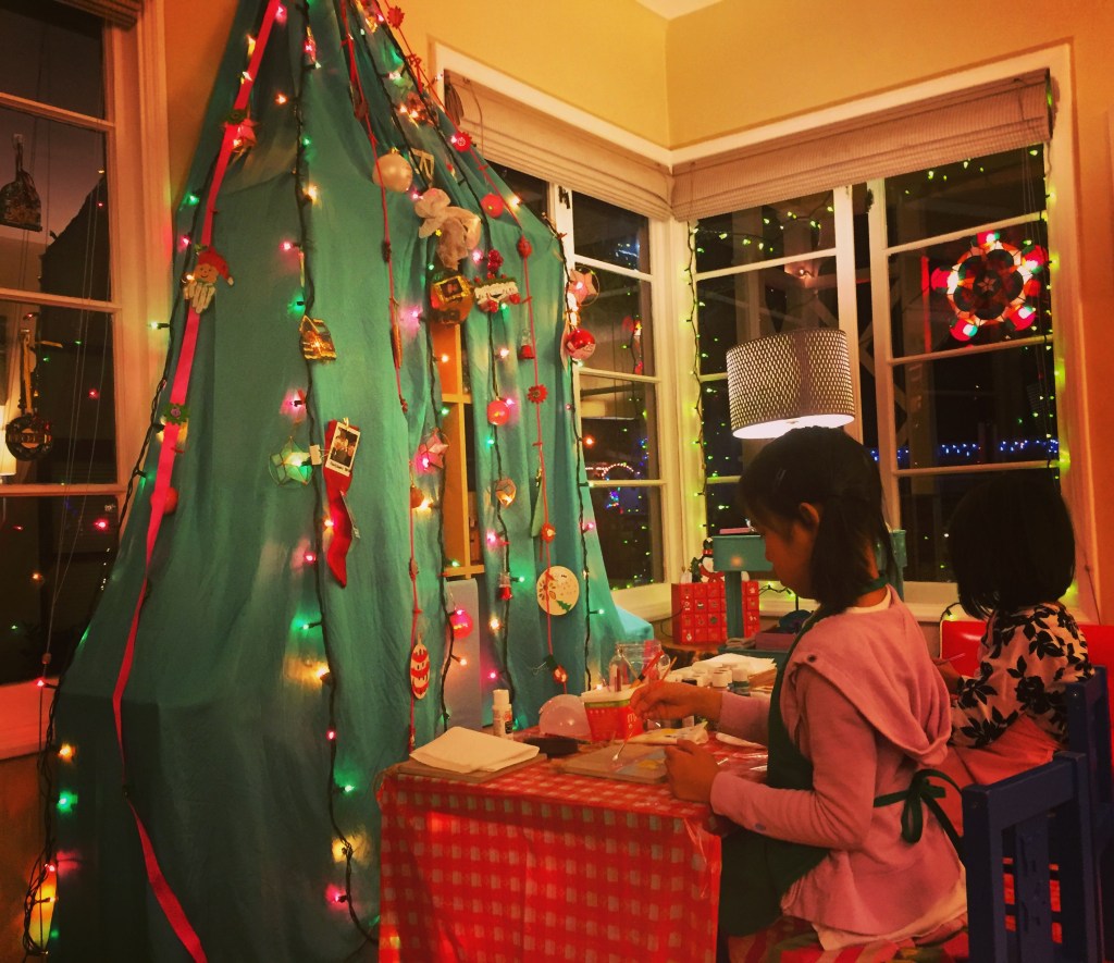 When I took it home, Noel put up all the lights and helped me set up the silk fabric and tulle. The girls and I decorated the bonsai. During this time, our family trip to Hawaii fell through. The kids and I were crushed. So Noel suggested we all spend the holidays in California. We were overcome with joy.