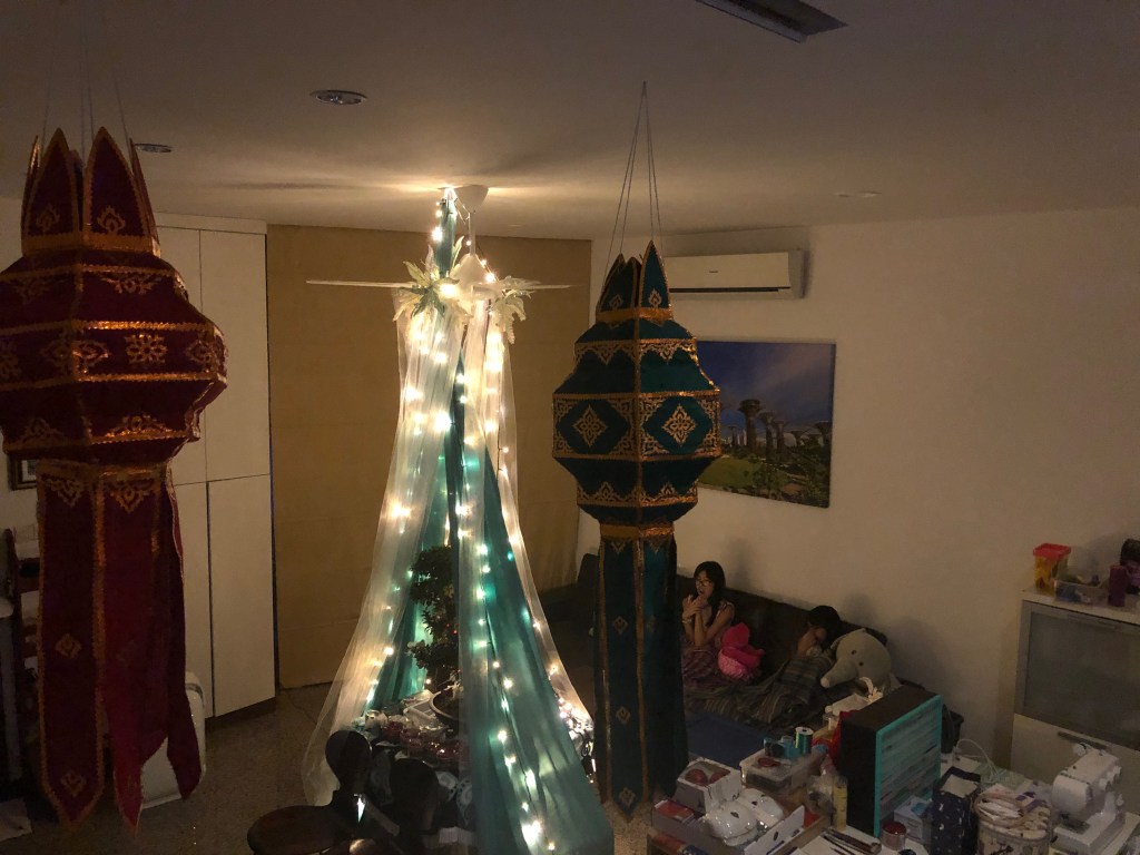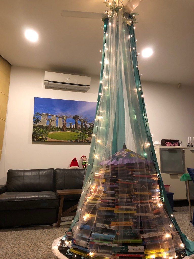 I had already done my research. I knew the cost of a live tree here was comparable to the cost in Northern California (where we lived before we moved back to Singapore last year), even with delivery and disposal charges. And, regarding the effect on the environment, I had read various reviews and determined that natural and artificial trees have similar impact. Live Christmas trees in Singapore are shipped from Europe or the United States. Plastic trees have a greater carbon footprint, though, than grown ones. I didn’t feel like going through all that with Noel. Plus, I didn’t want to remember our argument every time I looked at the tree.