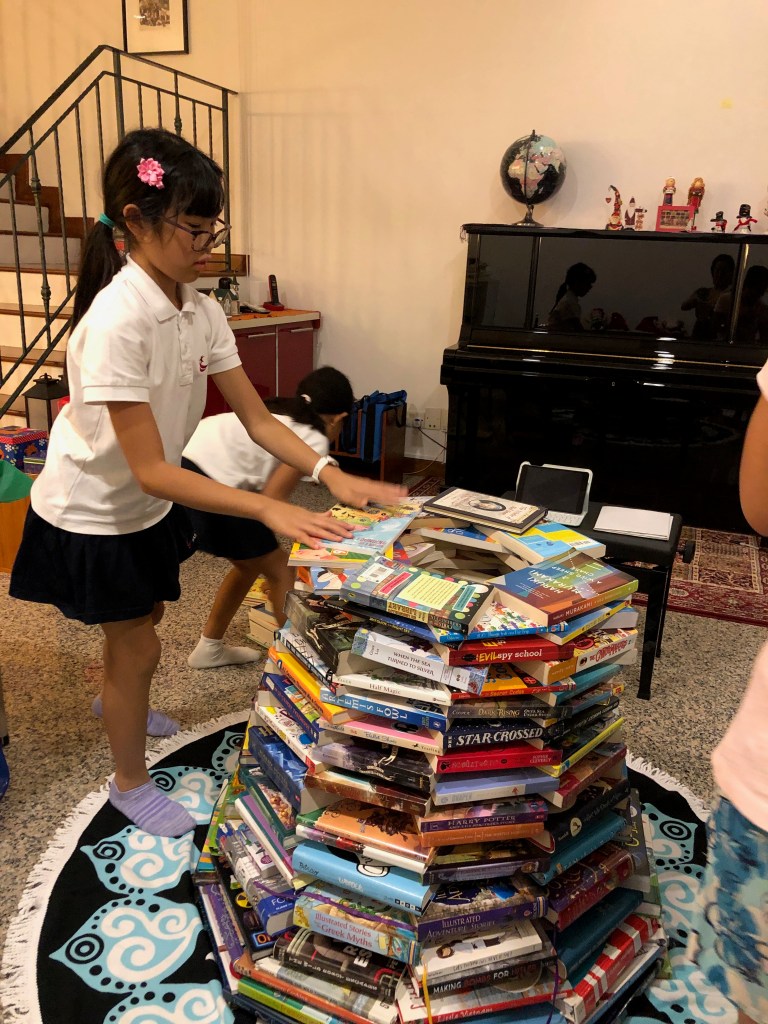 “It takes a lot of time and energy to put together a creative Christmas tree,” I began, pointing to the handcrafted holiday ornamentation that the kids and I always put together every year. Last year, we constructed a tree made out of books. Other years, we’ve used construction paper, glittered foam, bookshelves, or fabric to make the tree shape.