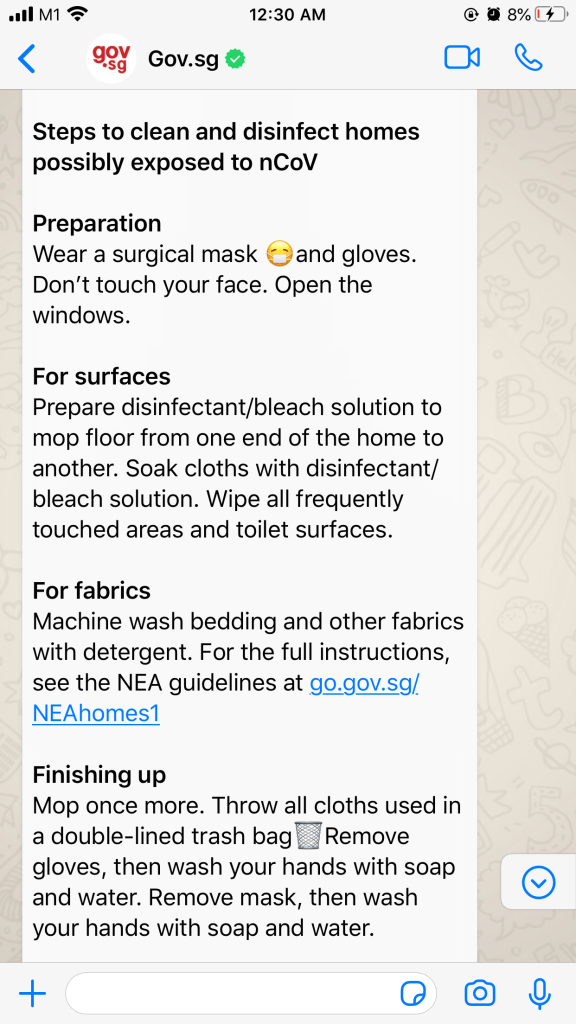 The Singapore government has also done an excellent job of communicating with people. Here are some of the texts we received from official channels: