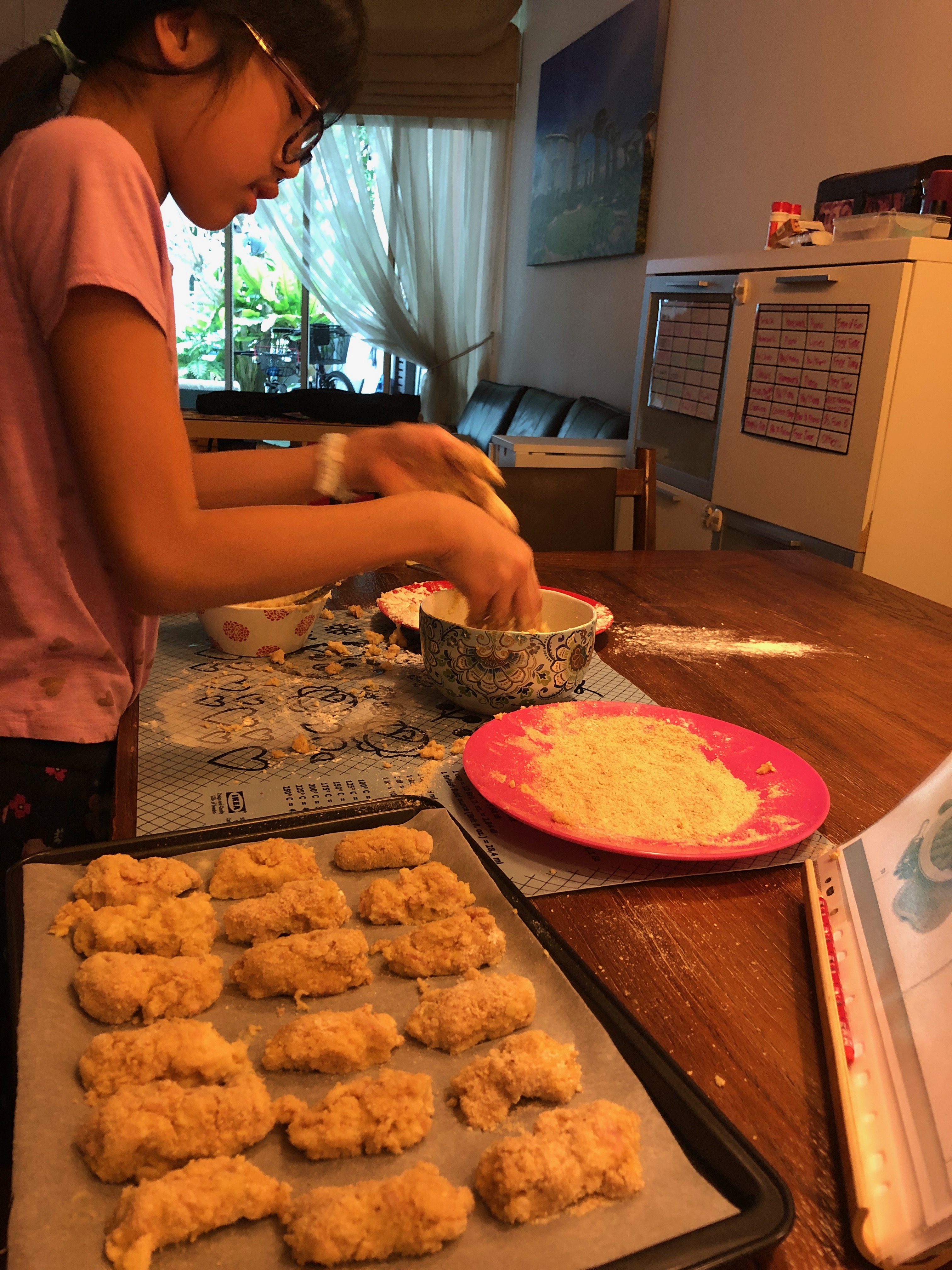 We’ve continued our brunch cooking sessions, in which the kids are in charge of the menu and meal prep every Saturday. They have made mostly the same thing. The repetition is great, because they become more efficient and more confident after every session. This means my job as sous chef has gotten easier, and we all get to practice a little mindfulness by concentrating on the task at hand instead of our worries.