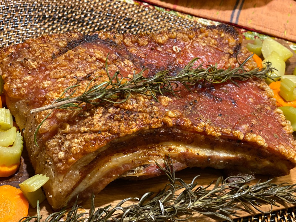 Noel made crispy pork belly, French onion soup, and lumpia (Filipino egg rolls with beef mince, plus finely diced carrots and celery.).
