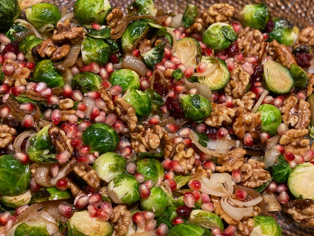 I made a brussel sprouts bonanza with candied walnuts, pomegranate, and dried cranberries. (My own take on an old recipe.) I also made a sautéed button mushrooms with gravy, of which I forgot to take a photo. It was a hit, though. There was none left at the end of the day.